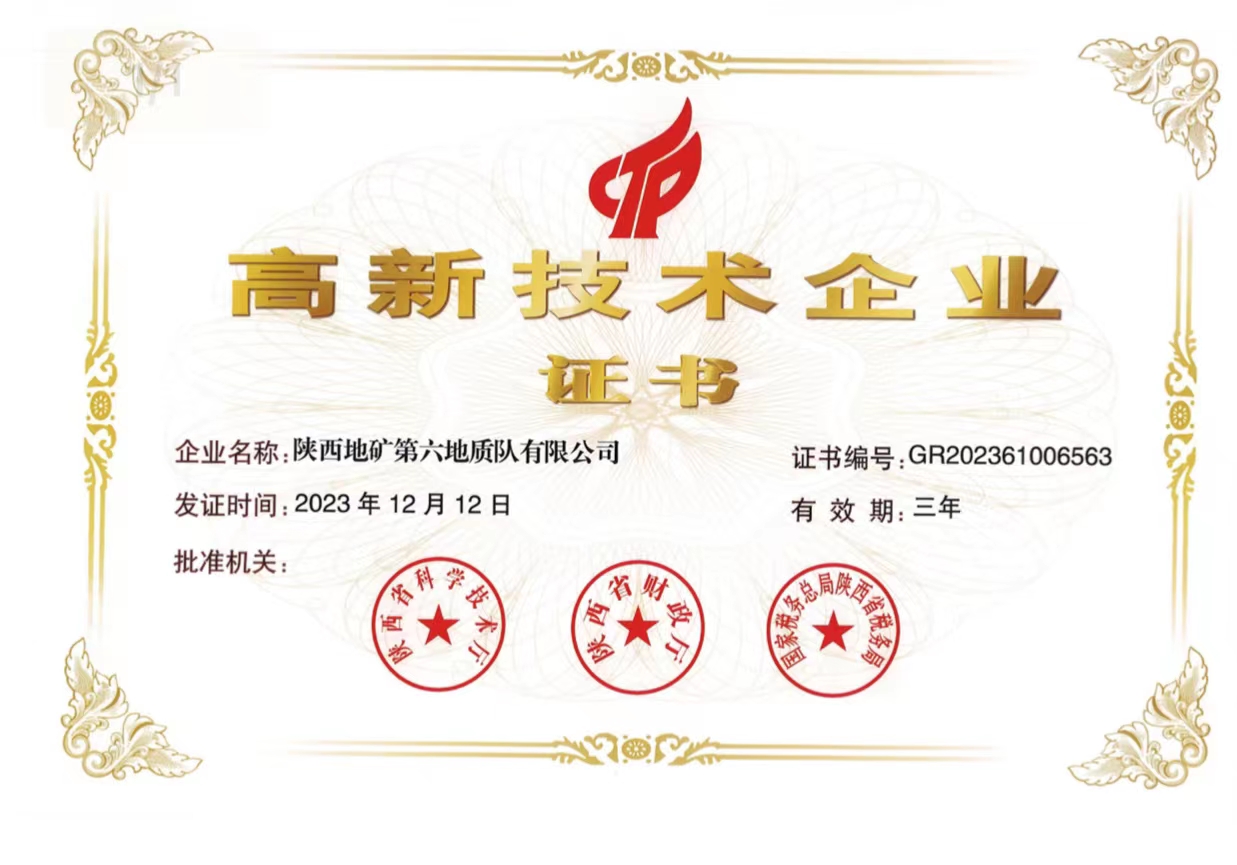 喜報!陜西地礦六隊取得高新技術(shù)企業(yè)證書